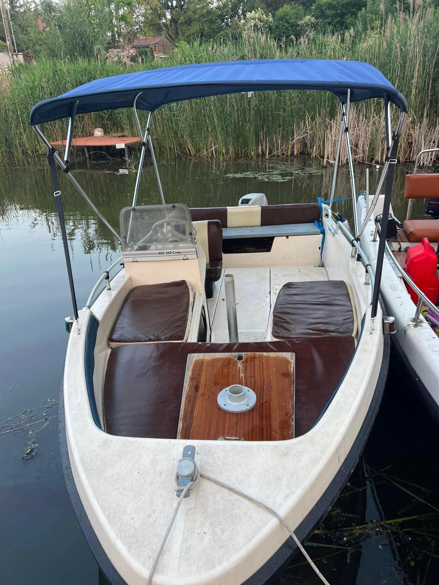 A legkisebb hajónkat Rio 450-nek hívják egy 20 lóerős Force motor van rajta és engedély nélkül vezethető hajó. A hajóról azt kell tudni hogy ,oldal konzolos ,a kormánynál van benne ülés és mögötte egy pad ,elöl egy nagy pad rész amit át lehet alakítani egy kis asztallal étkezőnek , vagy pedig egy nagy fekvő résznek ahol akár 3 ember is ki tud feküdni napozni , horgászatra is alkalmas kényelmes szép és könnyen vezethető. Minden felszereltség van hozzá 5 fő lehet maximum egy időben rajta ,mentőmellény és kettő evező van hozzá és egy jól árnyékoló nagy bimini tető amit 2 perc alatt ki lehet nyitni és a teljes hajót lefedi.